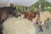 Beside Gabriel are Sweetie and Happy Trails, mother and daughter. Sweetie was a trail horse; she was out for a ride when she suddenly dropped and delivered her foal. The stable owner hadn’t known she was pregnant. If Freedom Hill’s volunteers hadn’t raised the money to purchase them, mother and foal would have been sold to a killer buyer.