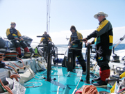 Conditions on board are rough. Space is limited and amenities nonexistent. “When you try to get dressed,” Paul Cayard, captain of Pirates of the Caribbean writes, “it is all you can do to not get thrown down and smash your face into the leeward hull 15 feet below. The noise is like being inside a 55-gallon drum and being dragged down a cobble stone road.”