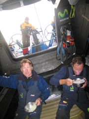 So intense were the waves round the Cape that ABN AMRO TWO reported most its deck stanchions were reduced to bent metal and many of its sails torn. Yet they survived. When the boats arrive in Rio some time this week, no one can gainsay them the right to put one foot up on the mess table, the sailor’s reward for sailing around Cape Horn.