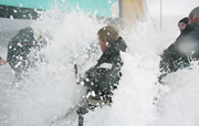 At Leg 3’s end, special awards honored Andre Fonseca for outstanding bravery. The Brasil-1 sailor dove into freezing water to recover the pieces of the mast and sails. Pirates of the Caribbean’s Justin Clougher earned the Ocean Watch Environmental Award for his descriptions of the bird and sea-life along the route.