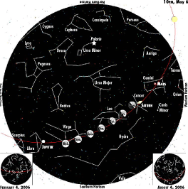 Just as the path of the ecliptic changes with the seasons, so do the constellations, and as the winter months give way to spring, some depart and others appear. Each year at this time, as Scorpius rises into view in the east, its victim, Orion the hunter, descends until the following fall.
