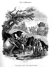 To understand Phiz’s life, Lester immersed herself in Phiz’s world. “I had to educate myself in Victorian illustration,” said Lester, who took classes in etching to comprehend what Phiz’s work entailed. “I learned just how good he was by applying myself to the same discipline,” she said of work she found labor-intensive and demanding. This ability to work on a miniature scale was a skill Phiz inherited from his ancestors. Lester learned in the handwritten family history of French Huguenot ancestors, who migrated to London and worked as watchmakers. “You can inherit a talent for the tiny. It seems there’s a gene for working on a small scale. Phiz inherited from his ancestors this talent for detail. His grandfather taught calligraphy and could draw tiny insects,” says Lester, who rues missing out on this trait. “I like doing little stuff,” she says, “but I’m not careful enough.” Phiz’s daily work was etching in miniature. For each illustration, he used a stylus to scratch into a wax compound on a steel plate. Then he dunked the image into an acid bath to eat away at the newly exposed steel lines. “He was incredibly good at it,” Lester said, judging from both the demanding complexity of the work and the amount and speed with which he worked. In etchings, Lester read Phiz’s story. In place of handwritten letters most were burned after they were received drawings filled in the character of the man. “I read his images, followed his progress,” she said. As she examined Phiz’s drawings alongside the history she researched, she could see ups and downs in Phiz’s work. “His work is uneven, but absolutely brilliant when it’s good. When he and Dickens are on a roll together, it’s symbiotic. They complement each other so deeply. In the later books, you can almost see them pulling apart,” she said. When the style evolved to favor drawings bigger and grander, Phiz fell out of fashion. “He looked dated by the 1860s,” she said. “He was beginning to get left behind.” It was a lifetime of drawings, though, that helped Lester understand Phiz in a way that musty books couldn’t. “I knew if he was having an off day. I could tell,” Lester said. Such illustrations would have much less detail and fewer background sketches than when he was really engaged and interested, she says, When Phiz rushed, it showed in a simpler, thinner design. Another characteristic Lester found in Phiz’s art was his sense of humor. “There are little jokes everywhere. He would put expressions of surprise or amusement in the eyes of horses for instance,” she says, recounting other works with faces on furniture and tree trunks. “He anthropomorphized a lot.” Humor is yet another trait Lester traces to Phiz, a characteristic passed on through her father, to her and her daughter. Her daughter is now a stand-up comedian in Tokyo, and works with an improv theater group. Lester says simply: “She’s hilarious.” Drawing DickensTo uncover Phiz’s relationship with his most famous associate, Lester followed Charles Dickens’ works. Sifting through Victorian literature wasn’t half bad. “Dickens writes like an angel. He can have you roaring with laughter. But there’s also a certain sentimentality that can be nauseating,” said Lester, who maintains that it’s Dickens’ comic characters his rascals, she says that make him great. “No one can touch him.” Dickens’ temperament, says Lester, was another story. “He didn’t treat people very well,” she says. Phiz was the Victorian author’s third illustrator. The first killed himself, and the second Dickens fired. Phiz was just shy of 21 when he began a 23-year illustrating partnership with Dickens. Though Dickens’ name was what pulled Phiz’s works to present-day recognition in works like Posthumous Papers of the Pickwick Club, Tale of Two Cities, Nicholas Nickleby and David Copperfield, all published independently with Phiz’s drawings in monthly installments The central subject always came from Dickens, but Phiz would often add to it with details of his own, Lester says. “What I wanted to do was show the world that there was much more to Phiz than Dickens. I worked very hard on the list of books that he illustrated,” she said. That’s a list that includes eight works by W.H. Ainsworth, poet Lord Byron’s The Poetical Works by Lord Byron (1850) and Poetical Works (1854) and 17 works by Victorian author Charles Lever. So Lester unearthed more than she promised in titling her book The Man Who Drew Dickens. “My effort really was to take him out from under the umbrella of Dickens. He was a man and not an etching needle,” she said. “He was someone you’d like to get to know.” Scratching More than the SurfaceThe longer Lester searched, the farther she traveled, and the more she found there was to find. The quest that sent her overseas to scour the British museum and find long-lost cousins also pulled her back to American soil. With two fellowships, she studied at the Huntington Library in southern California and Harvard’s Houghton Library, a rare book library where she spent a month. “I had the gift of time, stretches of time when that was all there was to do, to wallow in Phiz,” Lester recalled. Further travels led her to Australia and New Zealand. “Writing a book like this is a huge adventure,” she says, particularly if your character has family in fascinating places like Australia. Besides a collection of worldwide travels, unearthing Phiz gave Lester dogged determination as a “really relentless researcher,” she says. She learned to turn over every stone. She learned to pay attention. And she learned to not give up. One such puzzle piece came with the mysteriousness of his birth. “I smelt a rat, and the more I dug the more the rat stank,” she said. “It turns out that his actual parents are adoptive because he was the son of their eldest daughter.” Life with Phiz