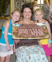 A large sheet cake representing a tobacco barn, a symbol of Southern Anne Arundel County, won the originality prize for Lindsey and Maddy Whitaker, whose grandmother, Joanne Riley, collaborated with Bea Poulin on the photographs of tobacco barns that are the museum’s current featured exhibit.
