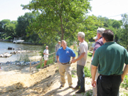 In a Bay Weekly interview, Johnson had this to say: “I genuinely care, and I’m willing to learn about the latest technologies and recommendations. Anne Arundel County has 500 miles of shoreline, the largest among Maryland counties, so we need to take a leadership role and work with our partners at the state and federal levels so they’ll stand up and take notice.” In a second endorsement, Howard Ernst author of Chesapeake Bay Blues, a book documenting how little we are getting from the hundreds of millions of dollars spent on Bay restoration over two decades has certified Johnson as a Blue Crab Candidate. “George understands the price of restoration and feels strongly that the Bay is worth the cost of restoration,” Ernst said. “He does not have the record of some of his fellow Blue Crab Candidates, but he is a quick learner and has gained the trust of the environmental community.” Third, Anne Pearson, founder of Alliance for Sustainable Communties, has endorsed George Johnson as “the only county executive candidate advocating for a Watershed Restoration Fund.” Funded like the Flush Tax on a per-home ($5 per month) and business basis, the fund would raise $35 million a year to restore Anne Arundel County rivers and creeks by improving the management of pollution-laden stormwater. “We took most of the candidates on a bus tour of problems and solutions,” Pearson said. “George was the only one who said, I see the problem, it’s tremendous. I’ll help!” Johnson’s Shade of Green“I’m the only one who has stepped up on the money for retrofitting our areas in need of better infiltration systems,” Johnson said, explaining his support of the proposed fund. Infiltration, Johnson said, means ponds dug to trap stormwater that runs off impervious surfaces. The ponds are so constructed as to “filter and trap nutrients and sediments now going straight into river beds.” Communities built from the 1980s on, he said, have infiltration systems. Earlier developments, including Anne Arundel’s traditional waterfront communities, were built before such mitigations were imagined. “It’s those communities we need to identify, and reach out to use the latest technology to trap nutrients going off into our waters,” he said. “If we put these in and many out there need them we will do our fair share to clean up the Bay and tributaries.” Johnson also said that he would “push the governor, whoever he is” to use proceeds from the Flush Tax to help people in Anne Arundel’s older communities purchase new sewage systems. Maryland’s Critical Area law is another Bay protecting-tool. Anne Arundel has postponed revising its law until after the November election [see Alexandra Brozena’s story “Critical of Maryland’s Critical Area Law?” on page 12]. So the next county executive will have a say in that revision. “We have to have a strong law,” Johnson said. “We need to do everything possible to protect our waterways, including setbacks, buffer zones and enforcing existing law. We’re probably going to have to bring on inspectors so we have more regulation and enforcement, so we don’t have surprises we can’t properly respond to.” Responding to critics who see him as a good-ol’ boy lacking the vision to seek sustainable solutions, Johnson countered that, as sheriff, he “really embraced the newest, latest, best practices that have helped the office to do its work better.” If elected, Johnson says that he would consider “transit zoning, so that developers build along our transit lines and rail systems so that people can go back and forth without cars.” Outgoing executive Janet Owens’ handling of development issues has alienated conservationists, including some that have endorsed Johnson. How would he stand on development? “I’m not a no-growth candidate,” Johnson said. “I’m a sensible-growth candidate, looking for solutions like revitalizing our neighborhoods and mixed-use, walkable neighborhoods so we don’t overburden our roadways and overcrowd our schools. “We need to continue to build, and developers have a role to play. I plan on keeping a good working relationship with developers so they know what is expected from our government,” Johnson said. “But nobody buys my vote or anything from me for any particular purpose.” Beyond GreenOn a broader level, how Johnson has run his 10-month campaign is revealing of how he’d run Anne Arundel County. The clearest lesson is that he’d work at it. There are not many places you can hide if you’re avoiding Johnson. You could retire to the Ladies Room, but he’d likely be waiting for you outside the door. Many days, he’s making stops from the deep south to the far north of the county, so you might run into him at, say, Discovery Village in Shady Side in the afternoon and at the Glen Burnie carnival after dark. You’ll see him at church suppers, dedications of public and private works, crab feasts, senior centers, fundraisers, candidate forums, trash pick-ups and, likely, at your door. August 5, for example, was a Saturday, so Johnson set out on a full day of campaigning. He started at 8am in Glen Burnie, handing out freshly assembled lawn signs to supporters. By 9:30am, he was working with Democratic Senate hopeful Ben Cardin to help clean up Edgewater Beach (pictured above). He spent the afternoon at the Blessing of the Fleet waterman’s festival at Discovery Village in Shady Side. From 6 to 11pm, he revisited the carnival in his home community, Glen Burnie, where voters not the rides or the midway or the junk food were the big attraction for Johnson. His bountiful energy has made him as familiar to Anne Arundel County voters as Kermit is to Muppet fans.