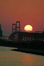 The Harvest Moon rises almost due east and hangs low against the horizon, looking unusually large. This is a trick of the eye called the Moon Illusion. When overhead, the moon provides few cues to its distance, so our eyes see it as one or two meters away even though we know it is thousands of miles away making it look smaller than normal. When against the horizon, other objects such as buildings and trees give us distance clues that the moon is much farther away, and we perceive it as being larger than normal.
