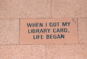 The new library has a brick patio where bricks are already inscribed with names and sayings. “When I got my library card, life began,” is inscribed on one. On opening day, a young boy searched for his. He’s sure to become a regular patron of the library where his name is etched in brick now and still will be when he is a grandfather.