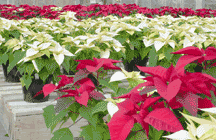 Providence Center’s 1,000 poinsettias are large, extravagant and brilliantly colored, in five hues ranging from red, to pink to marbled cream with pink centers, to white to mixed red and white.