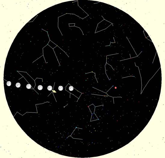 Back in the present, Mars hangs high in the west at sunset, and Saturn is high in the east. Look for Saturn near the moon Friday and Saturday nights.