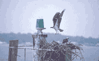 The ospreys’ loyalty to their nests, so admired by the superstitious farmers, has become the bane of the Bay’s Coast Guard. Though tall trees, duck blinds and artificial platforms lure many nesters, over half of Chesapeake ospreys call channel markers home.