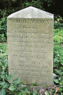 Another past resident who played a part in American history is buried in that cemetery; Virgil Maxcy of Maryland, U.S. diplomat to Belgium from 1838 to 1842 was killed in 1844 while aboard the USS Princeton testing a new cannon that accidentally misfired.