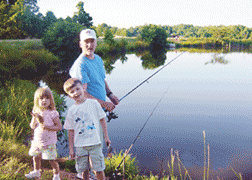Most Saturday mornings, he takes our children, five and three, and the fishing gear to the little local pond in Owings, amidst acres of farmland and subdivisions. Stocked with trout by Maryland Fisheries Service, it also holds catfish and plenty of sunfish for the kids. This tiny oval of water is home to an entire working ecosystem.