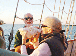 Blumberg and Mystic both kept their date. By June, they were sailing with passengers. I was one, together with 33 boating enthusiasts, all friends from the Hope Town Sailing Club in the Bahamas. We had gathered from around the States for a reunion and to check out this ship built by the daughter of two of our club members. For five days, we explored the waters and small islands off the coasts of Connecticut, Rhode Island and Massachusetts. In the close quarters aboard ship, I got to know my friends better, as well as Blumberg and the Mystic.