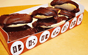 Invented by two German immigrants in Baltimore, Berger Cookies are really a small piece of cake that holds an enormous amount of fudge frosting. The cookie averages about one and a fourth ounces of icing on every one-fourth ounce cookie. The Berger brothers began selling this sweet treat at Baltimore’s open air markets, where the smell of chocolate fudge wafted over the crowd, drawing hoards of customers to the bakery stands.