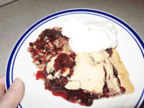 Bake 30 minutes or until bubbly and golden brown. Serve warm with vanilla ice cream.