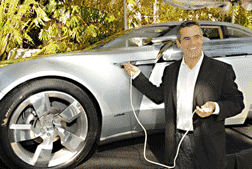 Bob Boniface, General Motors Director of E-Flex Systems Design, demonstrates the ease of recharging a prototype Volt.