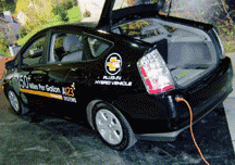 For about $10,000, the company will install a lithium ion nanophosphate battery into your wheel well and a standard 110-volt plug into your bumper. Before drawing power from the hybrid engine, these retrofitted cars run off the lithium battery about the size of a briefcase. At the end of the day, simply plug your car in with an extension cord to recharge the battery.