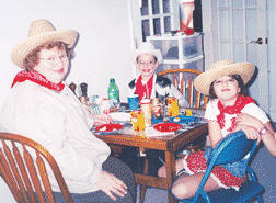 Cowboys: At the best of times after the families merged, Terese Wells’ mother Charlotte Oliver shared tea parties with her grandchildren, Andrew and Rebecca.