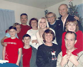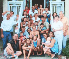Margie Bednarik (fifth from left) shuttles among the families of her three daughters, including author Michelle Steel (second from left.)