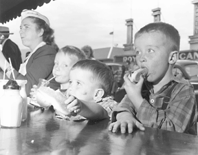Walking through the exhibit, you’ll tour the American eating experience. Beginning with agriculture, you learn how land has changed from early Native American cultivating techniques to the air-conditioned, computer-equipped tractors that till modern fields. You discover the role of technology in foods, learning how refrigeration and chemical preservatives changed the way we consume meals. The quirks and curiosities of American foods appear in a pictorial featuring food festivals and theme dining.