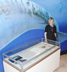 The novel extinct dolphin species unearthed near Calvert Cliffs has been named after Jean Hooper, the Calvert Marine Museum paleo-volunteer who discovered the remains. The name Stenasodelphis russellae honors Hooper by using her maiden name, Russell, as the basis of the species name. The new genus name (Stenasodelphis) comes from Latin word Stena, or the narrows, a reference to the bones; naso from the Latin nasus for nose, a reference to the nasal bones appearing to be pinched; and delphis, Greek for dolphin. Hooper found the partial skull of the extinct dolphin and helped determine that it was an unknown species …