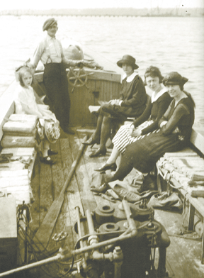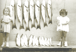 Harriet Williams and Janice Wood with the day’s catch in the late ’30s.Harry E. Lewis Sr. on the water with four of his daughters around 1924. |