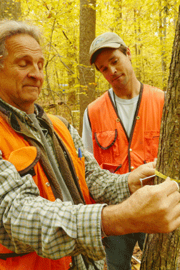Earthwatch Institute volunteers measure a tree’s girth as part of climate research program at the Smithsonian Environmental Research Center in Edgewater. |