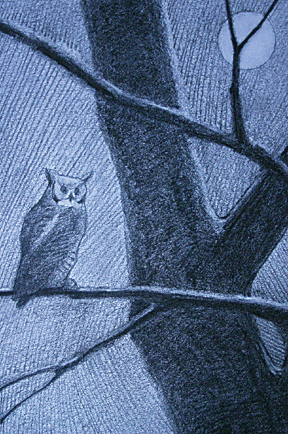 The Great Horned OwlTheir call carries far through the nearly naked treesIt was nighttime in early November. From somewhere down by the Creek, a great horned owl sent a not-so-loud but oh-so-deep call that carried a long way. The sound murmured through the woods, to the field and across the road, as far as the trees at the edge of the far field. Not quite a mile; let’s call it a country mile. My voice could not carry so far, even if I shouted. You have looked across the Bay to the Eastern Shore, and I would guess that you’ve traveled west toward the Appalachian Mountains. When you look at the distant shore or mountains, what color do you see? They don’t call it the Blue Ridge for nothing. The blue color notes are analogous to the call of the great horned owl. Up close, the color of the land is full spectrum. But from a distance, what you mostly see is blue. Blue and violet are the light spectrum’s version of bass notes. Sound and light are waves. The longer the wave-length, the more durable it is and the farther it will travel. I am not a physicist so I will back off this particular limb before I demonstrate my ignorance. I am a landscape painter, however, and therefore preoccupied with the problem of how to make the distant hills look far away. Simply put, I’ve learned to mix a pale blue-gray to show aerial perspective, to call it by its technical term. I understand how the owl sends its voice across long distances. But why? There must be a need, but I have looked for an answer in my small library of bird books and found nothing. So, having risked critical letters from the physicists and artist readers of Bay Weekly, let me tempt the biologists, too, by suggesting the why. Owls are top predators; nobody messes with them. They feed on rodents, birds and insects. It takes a lot of small critters to feed an owl family, so they need a large territory. They also need to communicate. Males send out calls to attract potential mates as well as to warn male competitors to keep their distance. Being denizens of the forest, the owls need a powerful and deep voice to penetrate the dense woods and carry far enough to reach the potential mates who are, because of their relative rarity, scattered as far as the trees at the edge of the field across the road. |