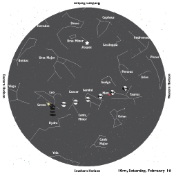 Sunday the moon is in Gemini, roughly five degrees below golden Pollux and less than 10 degrees from blueish Castor. With the beginning of the new week, the moon passes through Cancer and on to Leo. Come Tuesday, the moon is little more than 10 degrees to the west of Regulus, the heart of Leo the lion, with golden Saturn another five degrees farther.