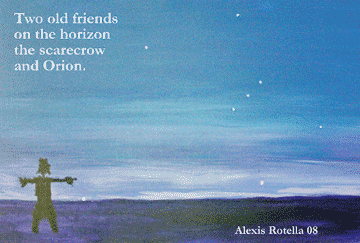 This wordplay shoots over the World Wide Web’s highways and byways, ringing new age variations on an old world art form. In another linkage of ancient and modern, Rotella enhances her haiga and taiga with digital imagery. The modern Muse calls Rotella to work in Photoshop.