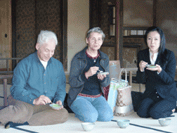 Alexis Rotella, center, with husband Robert Rotella and translator Misaki Ta Teo at a Japanese tea house.