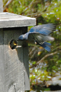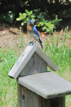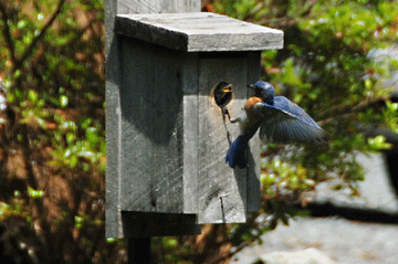 For bluebirds, it’s the male’s job to locate a variety of homes. The female makes the final decision.