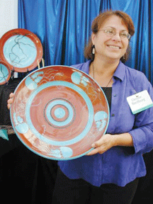 “Everything about pottery is magical,” she says, “from the hypnotic spin of the potter’s wheel, to the transformation of a shapeless lump to a graceful shape, to the mystery of colors appearing in the heat of the kiln.”