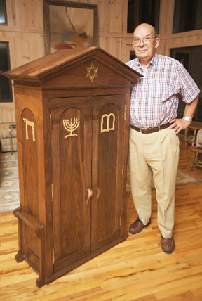 Benning visited several synagogues to come up with his design for the Ark. The finished piece, crafted from walnut with basswood ornamental overlays, stands more than four feet high. It and the Torah it houses will be kept at St. Paul’s Episcopal Church in Prince Frederick, which has hosted the Beit Chaverim congregation for several years.