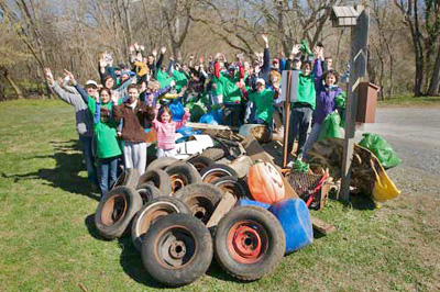 Volunteers show off their haul at the Potomac River Watershed Clean-Up.