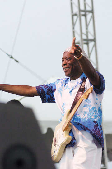 Buddy Guy, who headlines this year’s Saturday, May 22 set, proved that a little rain wouldn’t wash away his blues. He performed during the inaugural downpour in 1998. Then in 2007, lightning struck when he started his set.