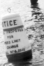 photo by Bill Lambrecht A buoy in A.A. County's Rockhold Creek gives notice of proposed speed changes.