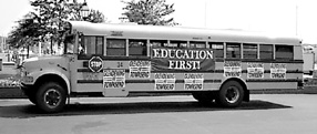 On the eve of the primaries, Gov. Parris Glendening's day-long "state-wide" school bus campaign ride kicked up dust - though the state Glendening and crew toured was only as wide as the ride from Rockville to Annapolis.