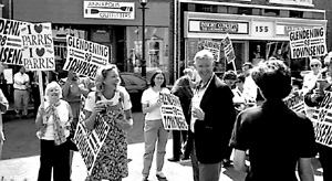 The Glendening campaign machine hiked the rest of the way up Main, boarding the bus at Church Circle and headed off to Baltimore. In their wake was a street full of people the governor talked to, a few excited supporters and one charged up Sauerbrey supporter.