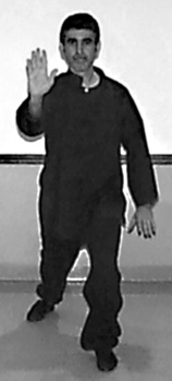 The movement we are learning on this night is called "brush knee - strike with palm," a blocking and striking technique applied with relaxed grace.