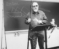 Burton's career as a professional journalist and outdoorsman has led him into the movies, where he played a U.S. senator and into the classroom.