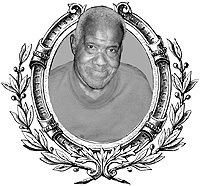 James E. Johnson, called "J.J." emerges from the Halloween party with a wide grin. He's a sight, sitting in his wheel chair with his feet straight out in front, wearing large, rubber bare feet over his slippers. He's chosen feet for his costume rather than a scary mask. Johnson, born in Lusby in Calvert County, served in the Army during the Korean War. He said he was lucky: he didn't see any action in Korea. He fixed telephone lines while serving in the infantry.