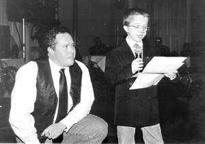 Calling the crowd to battle was a poem written and read by the honorary Black & Blue Ball spokesman, Mattie J. Stepanek, above at right, an eight-year-old suffering from Muscular Dystrophy: