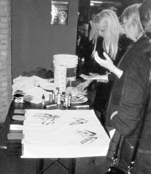 Supporters at the Step-One Unity Party at AACC use their hands to create doves on the curtains that will hang in the Unity Bus.