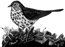 The wood thrush is a forest-dwelling bird slightly smaller than the familiar American robin and similar in shape but not so colorful: This thrush is brown on the back with brown spots on its breast. East of the Mississippi, wood thrushes are common in dense woods, where their remarkable, flute-like song can be heard, especially at dusk in May and June.