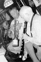 On saxophone, David Kaseman, 64, was 12 when his uncle began teaching him the horn. He plays soprano and tenor sax as well as clarinet and flute, working professionally with several bands. Playing with The Jammers for more than a year, he is usually the first member to arrive on Sunday though traveling from Sterling, Virginia. Early and well dressed, this typical Virgo reaps the rewards of discipline: true talent. Both Benny Goodman and Zoot Simms have influenced his career, and "Sweet Georgia Brown" is one of his favorite numbers.