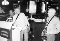 photo by Mark Burns Trombonist Tony Caporale, trumpeter Dick Sowell and saxophonist David Kaseman rest after a jam.