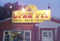 Farther down the Bay mid-way into Calvert County, you'll find on an old frontage road flanking Route 2/4 John's Open Pit in Huntingtown. Delicious pit beef, tender sliced pork and tangy pulled pork will leave a barbecue lover hard pressed when ordering at the counter. And the ribs are great! These are big, meaty spareribs, smoked and served dry. You can lather up the ribs - or any other barbecue - with either John's homemade hot sauce or mild sauce.