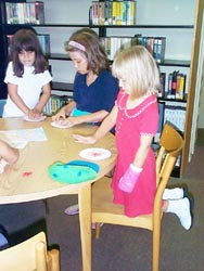 Nancy allowed kids to handle the objects as long as they didn't run away with them. Then the children made their own fossils out of play dough and molds. Brian was generous enough to hand out small shark's teeth to the children. Then cries of "Look what they gave us, Mom," could be heard throughout the building.