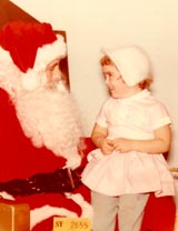 Every Christmas among our Christmas decorations I hang photos of my husband and myself as children sitting separately on Santa's lap. Last year, after 22 years, I got a surprise. With a photo in each hand, I noticed a strange similarity. "Dennis," I said, "I think this is the same Santa."