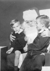I was nearly 2 in my picture, and Dennis 6; his brother Tom, also in the picture, is 3. So I tell my husband our marriage was fated since we met 50 years ago in the line to sit on Santa's lap.